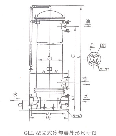 注:GLCA型與GLC型外形尺寸相同,油、水口有螺紋和法蘭兩種冷卻器